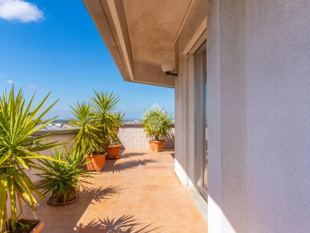 ANDRIA - Nel cuore della storica 'Città dei Tre Campanili', precisamente in Corso Cavour all'interno dell' elegante e prestigioso condominio, proponiamo in vendita un esclusivo attico panoramico situato all'ottavo piano. L'immobile caratterizzato da un' esposizione angolare, gode di una vista spettacolare sulla città, offrendo un'esperienza abitativa unica, all'insegna della luminosità e dell'ariosità. L'ampia metratura e la distribuzione degli spazi lo rendono ideale per chi cerca un investimento di valore in una delle zone più ambite della città. L'ingresso, ampio ed accogliente, introduce a una spaziosa cucina abitabile, perfetta per momenti conviviali, e a un luminoso ed ampio soggiorno, cuore della casa, ideale per il relax e la socialità. La zona notte è composta da due camere da letto, studio e da un bagno padronale. A completare il tutto troviamo un comodo bagno di servizio e un funzionale ripostiglio, ideali per rispondere alle esigenze di spazio e organizzazione quotidiana. Uno dei punti di forza dell'attico è il grande balcone, che avvolge l'abitazione permettendo di godere della luce naturale durante tutto l'arco della giornata e garantendo un'ottima areazione degli ambienti. Un secondo ingresso offre, inoltre, la possibilità di suddividere l'unità in due appartamenti distinti, rendendo l'immobile perfetto per chi desidera una soluzione con potenziale di frazionamento. Lo stabile ha recentemente beneficiato di importanti interventi di manutenzione, tra cui il rifacimento delle facciate e dei terrazzi, garantendo così un contesto elegante e ben curato.