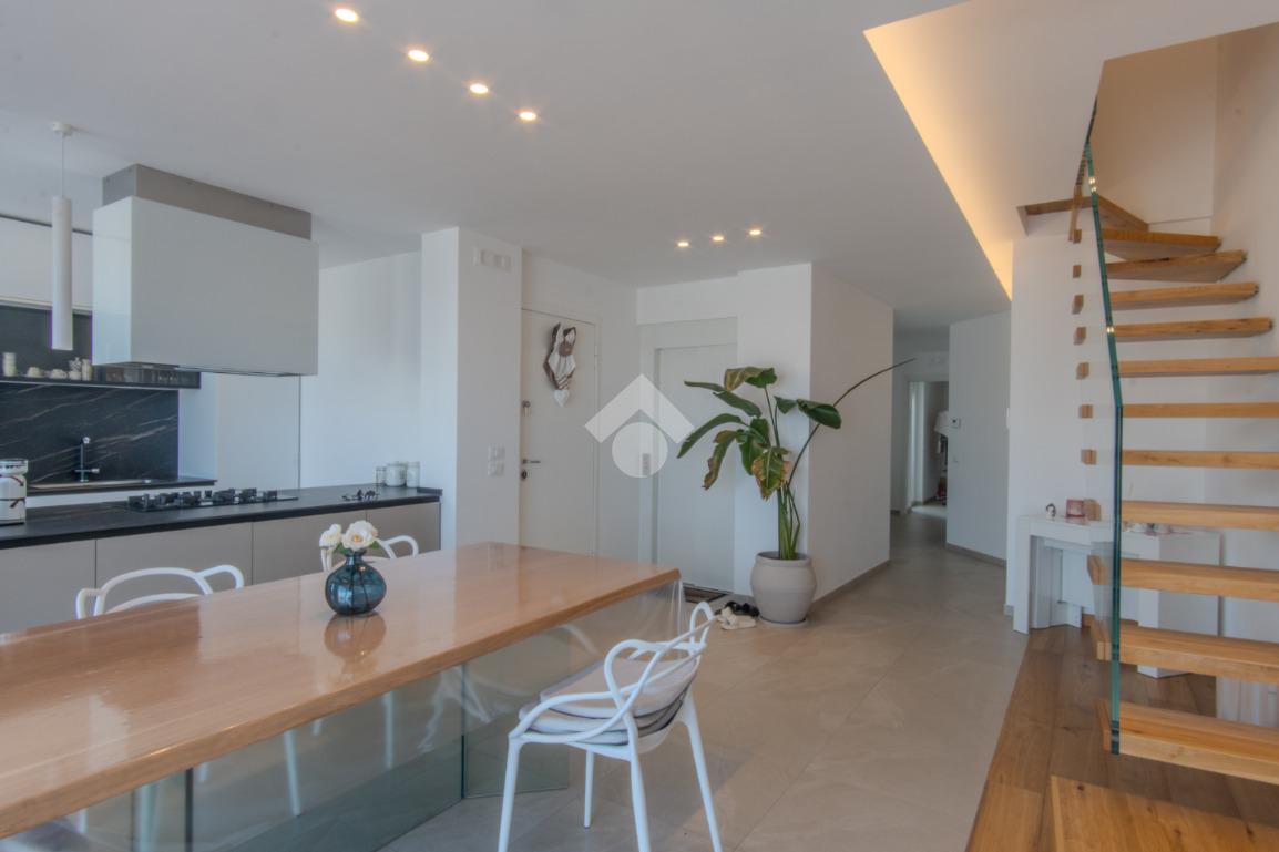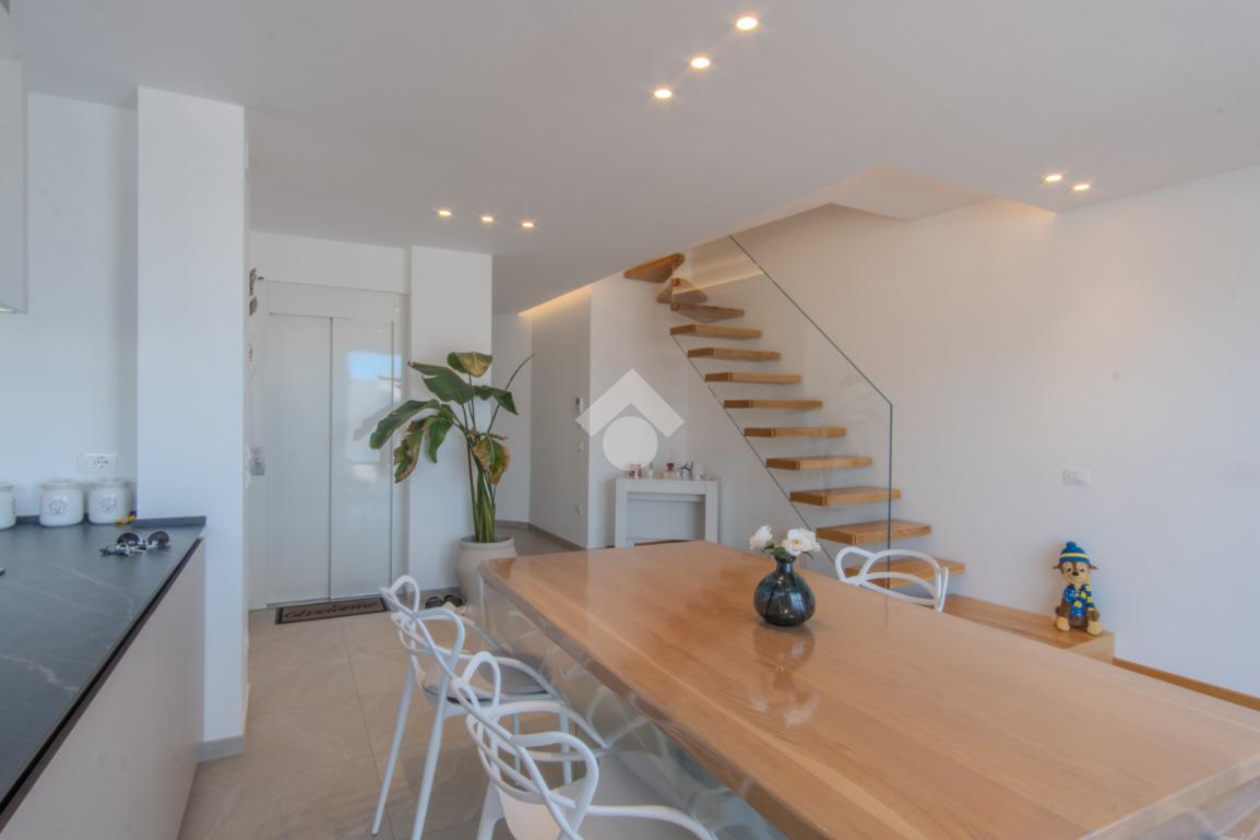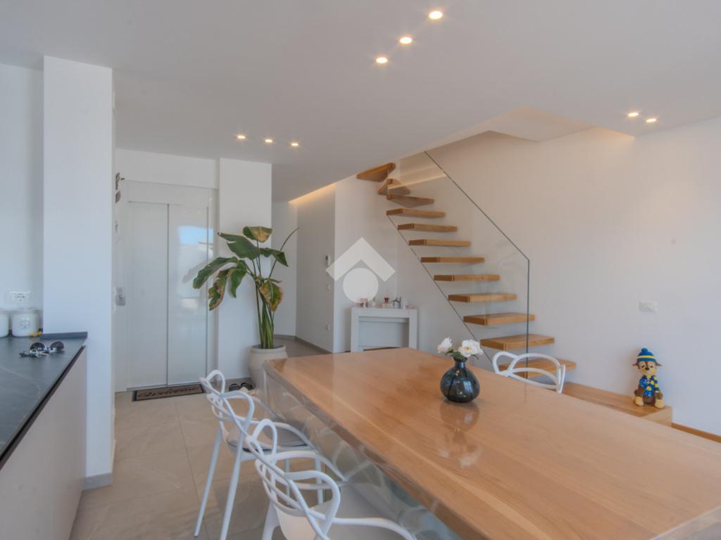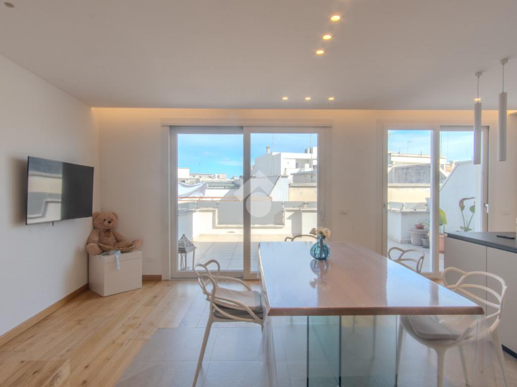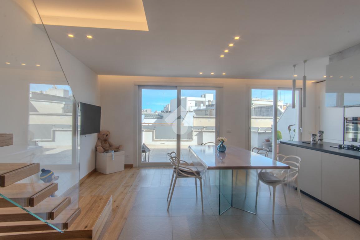 ANDRIA - In Via Montessori proponiamo in vendita un appartamento su due livelli, inserito in uno stabile di recente costruzione, realizzato circa cinque anni fa. L’abitazione si sviluppa tra il terzo e il quarto piano ed è dotata di un doppio accesso, sia dal vano scale tramite ascensore sia con accesso diretto all’interno dell’appartamento come da foto, elemento che garantisce comfort e riservatezza. Il terzo piano accoglie la zona giorno, composta da un ingresso con cucina a vista che si apre sulla veranda antistante attraverso due ampie vetrate, conferendo agli ambienti un’eccellente luminosità naturale. Sullo stesso livello troviamo un soggiorno comodo e riservato, una stireria con affaccio sul balcone retrostante e un bagno. Attraverso una scala interna di design si accede al quarto piano, destinato alla zona notte. Qui sono presenti una camera da letto matrimoniale con cabina armadio, due camerette con balcone e un bagno, rifinito con materiali e soluzioni dal design moderno. L’immobile è dotato di riscaldamento a pavimento, mentre l’illuminazione è affidata a un sistema a LED a luce calda, integrato nel ribassamento del soffitto, che contribuisce a creare un ambiente elegante e accogliente. Soluzione ideale per chi è alla ricerca di un’abitazione moderna, curata nei dettagli e pronta da vivere, in un contesto recente e ben servito. È inoltre prevista la possibilità di acquistare l’intero arredamento, previo accordi.