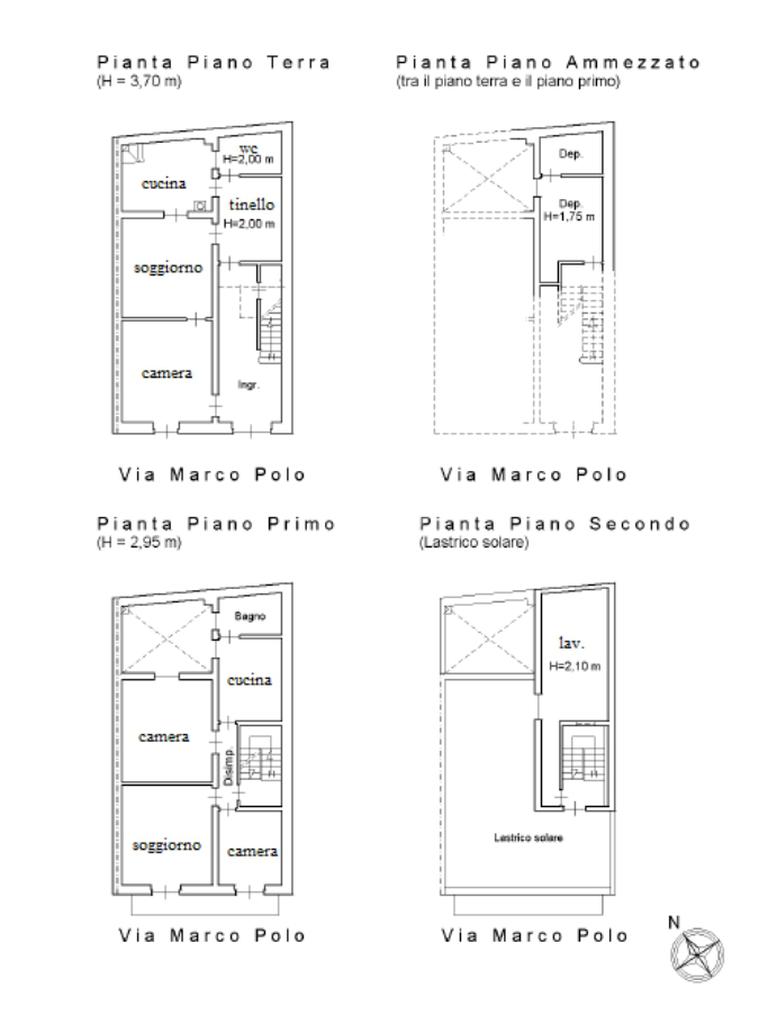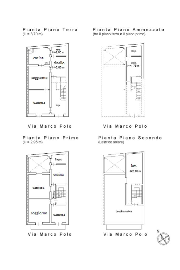 ANDRIA - In Via Marco Polo si propone in vendita casa singola attualmente composta da 2 unità immobiliari una posta a piano terra e l'altra al primo piano oltre al terrazzo sovrastante. L'appartamento al piano terra è composto da una zona giorno con accesso ad un atrio retrostante, una camera da letto, bagno e ripostiglio. Il primo piano si apre su un corridoio che disimpegna gli ambienti ed è composto da una cucina abitabile, un bagno, 2 camere da letto e un sala. Balcone su strada. Tra il piano terra e il primo piano è presente un piano ammezzato, utile come ripostiglio, che si aggiunge agli ulteriori spazi di servizio già presenti all’interno dell’abitazione. Il terrazzo sovrastante rappresenta un valore aggiunto ed è servito da un vano accessorio ad uso ripostiglio, ideale come spazio deposito. E' possibile eventualmente adibire il piano terra o parte di esso, ad autorimessa, in base alle proprie necessità. Soluzione ideale per chi è alla ricerca di una casa indipendente ed autonoma, potenzialmente per due famiglie. Libera in breve tempo.