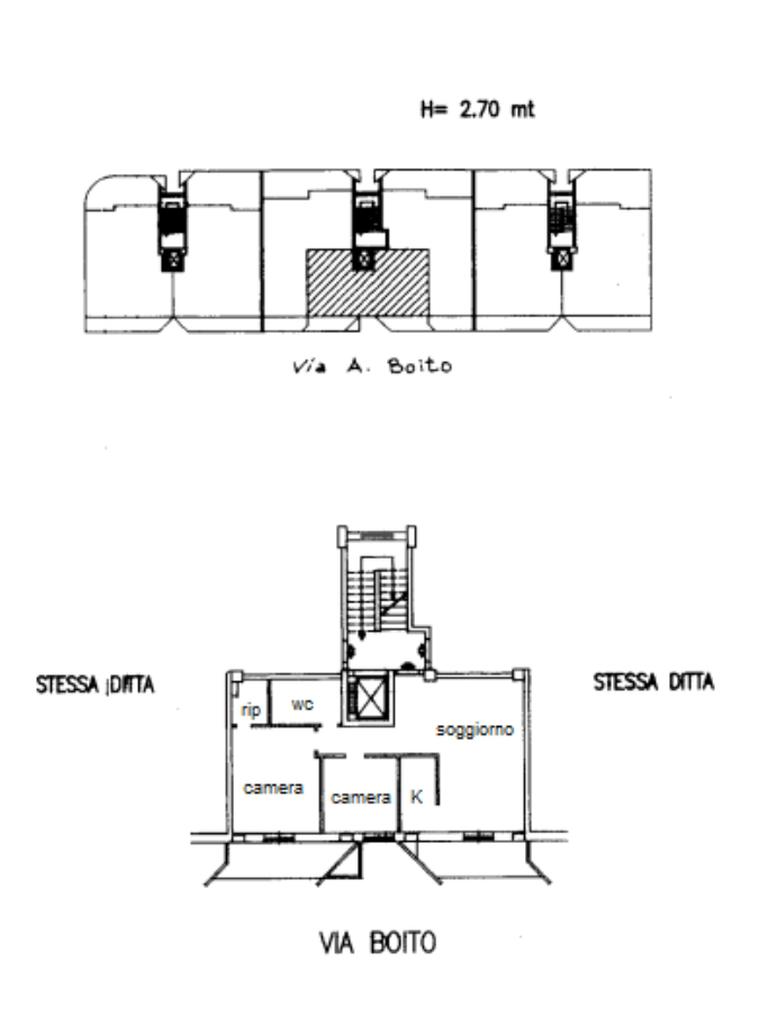 In zona Rossini e precisamente in Via Boito disponiamo di un appartamento situato al piano medio di un edificio di 5 piani dotato di ascensore. L'immobile è composto da due camere da letto, ampio soggiorno pranzo a vista, cucinino, bagno e ripostiglio. Completano la proprietà un box auto e due posti auto, offrendo ampie soluzioni di parcheggio. Il solo appartamento è locato ad euro 505,00 mensili. Buone le condizioni sia interne dell'unità immobiliare sia quelle esterne dello stabile. Le immagini sono modificate digitalmente a scopo illustrativo.